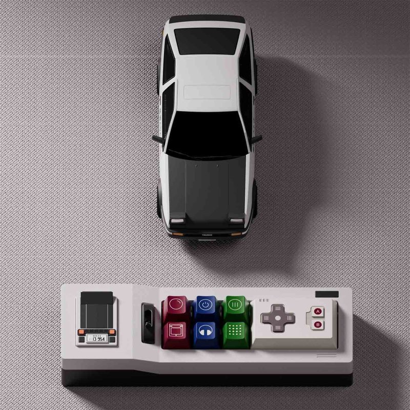 Nguyên mẫu thiết kế được lấy cảm hứng từ mẫu xe JDM cổ điển – Toyota AE86. Thiết kế bên trái là hình ảnh mặt trước xe nhìn từ trên xuống cùng với cụm đèn pha và đèn hậu. Hình dáng tổng thể là các đường nét của bảng điều khiển trung tâm.