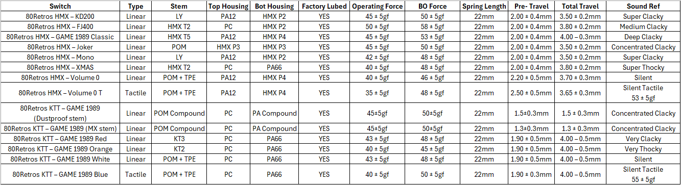 Thông số chi tiết 80Retros HMX Film switch – FJ400