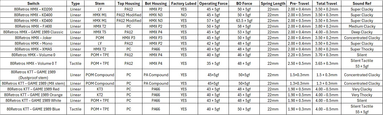 Thông số chi tiết của 80Retros HMX Film switch – Game 1989 Classic