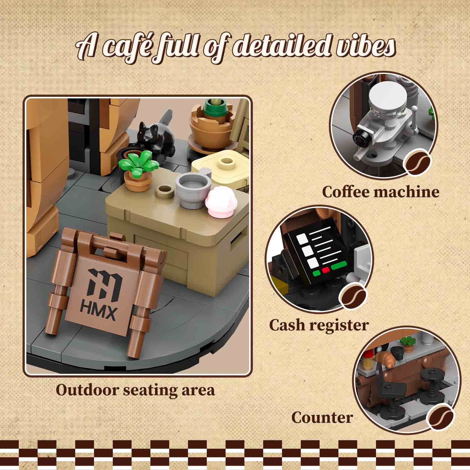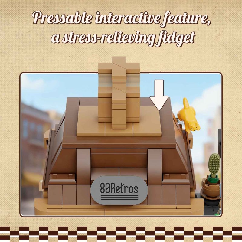 80Retros Switch Café là sự kết hợp giữa bàn phím cơ custom và khối hình lắp ghép (LEGO). Mô hình lắp ghép này lấy chủ đề chính là quán cafe và switch bàn phím cơ cùng khả năng mô phỏng áp lực với switch có thể ấn xuống như switch bàn phím cơ.